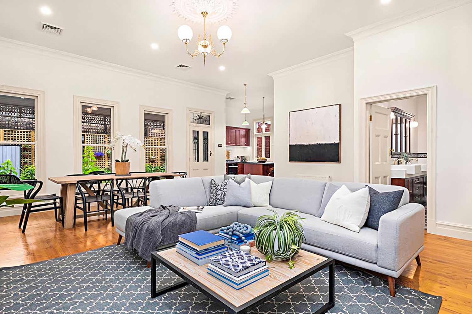 Bayside Architectural renovation with soaring ceilings, leadlight features and Baltic pine floors complimented by an abundance of natural light throughout two expansive living spaces with gas fireplaces, formal living room, home office and an expansive open plan living and dining area enjoying north westerly outlooks.