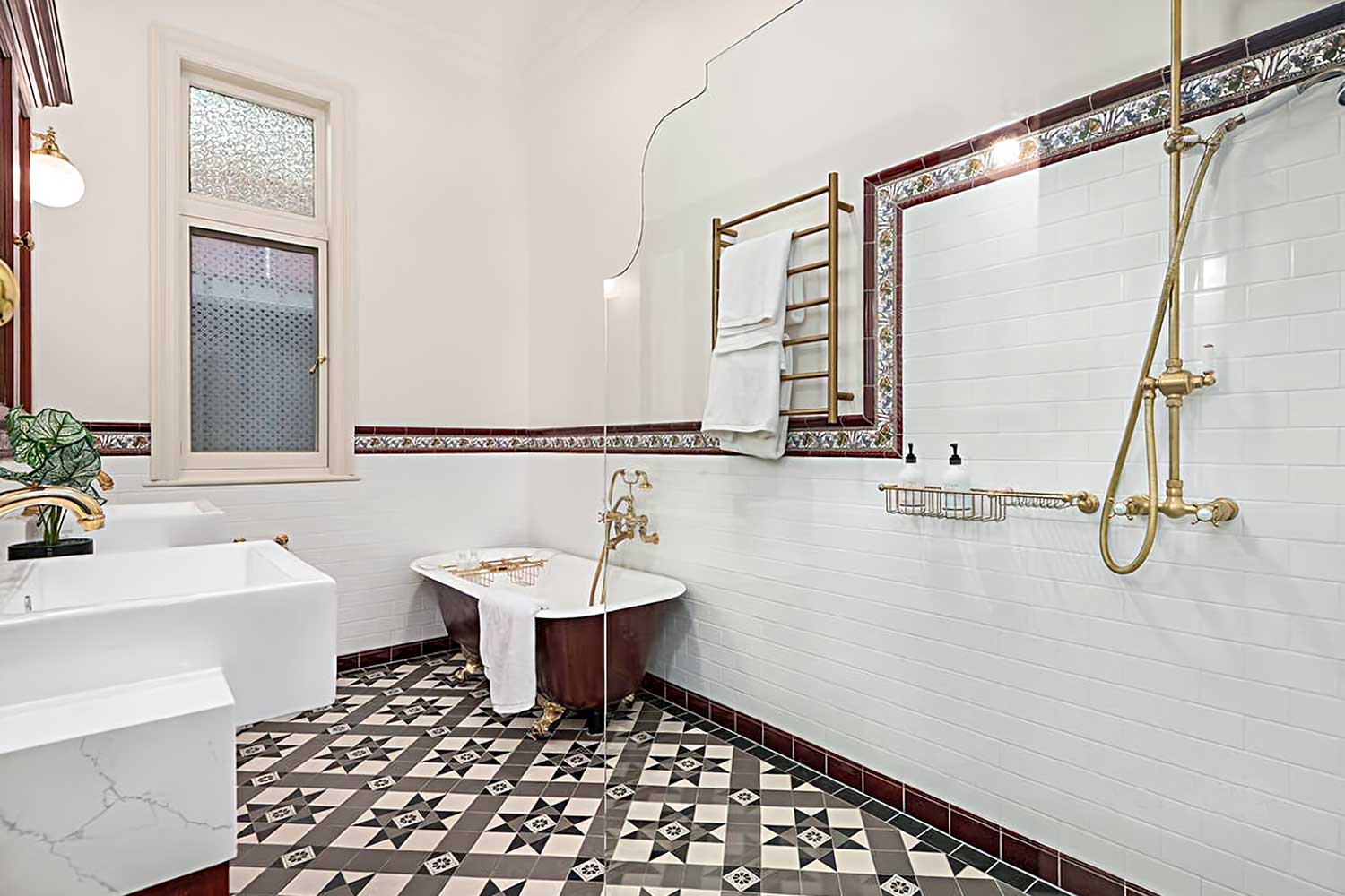 Features include Handcrafted Jarah Kitchen, Laundry & Vanities with Quartz benchtops; tessellated tiles, walk in shower, freestanding bath, brass tapware, zoned air conditioning, hydronic heating, solar panels and attic storage.